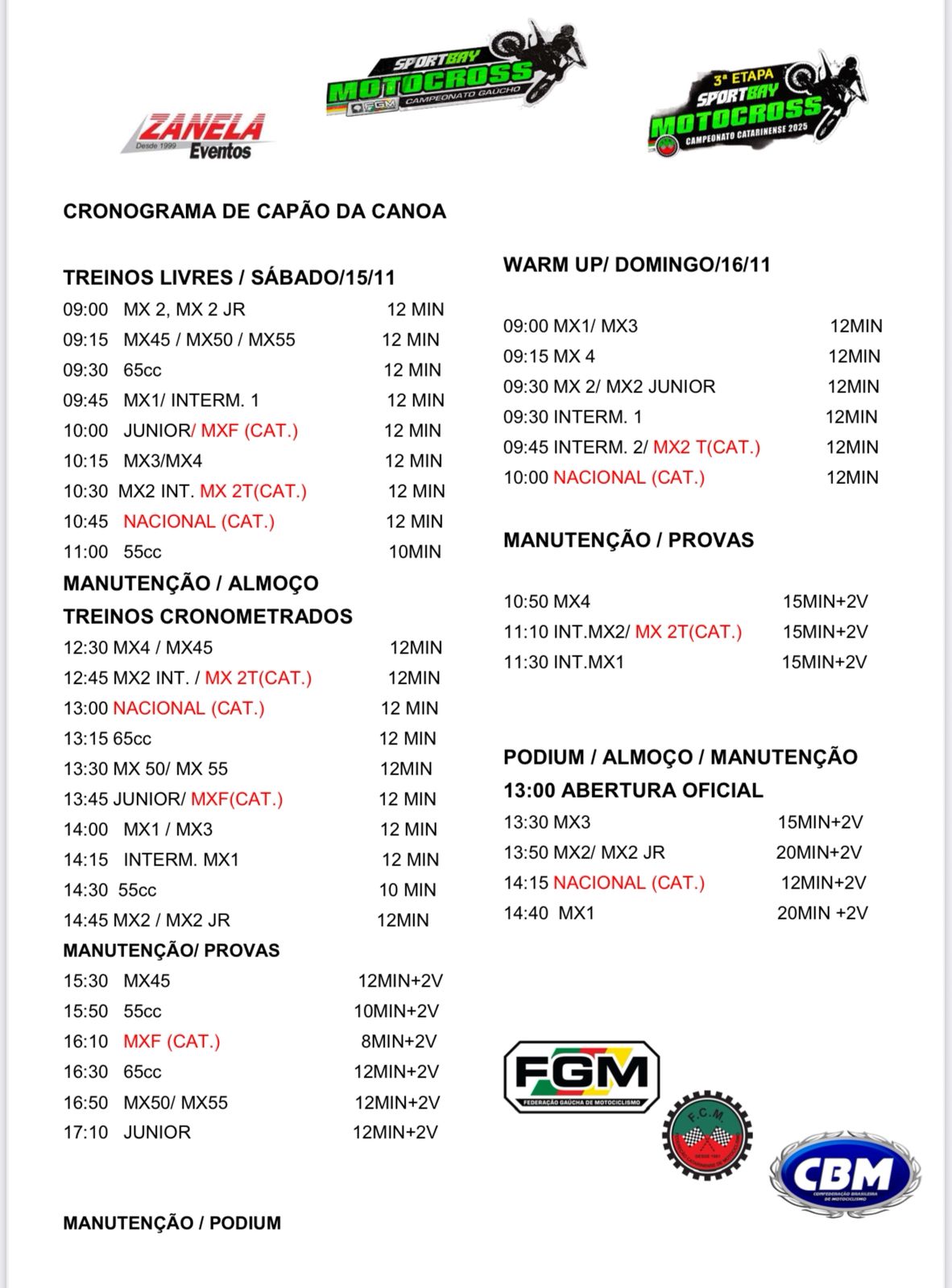 Amanhã, a programação segue normalmente, conforme já havia sido divulgada pelos organizadores, prometendo mais disputas intensas e clima de decisão. Vale lembrar que o evento acontece em conjunto com a 3ª etapa do Campeonato Catarinense de Motocross, tornando o domingo ainda mais especial e garantindo um encerramento à altura dessa grande final em Capão da Canoa.