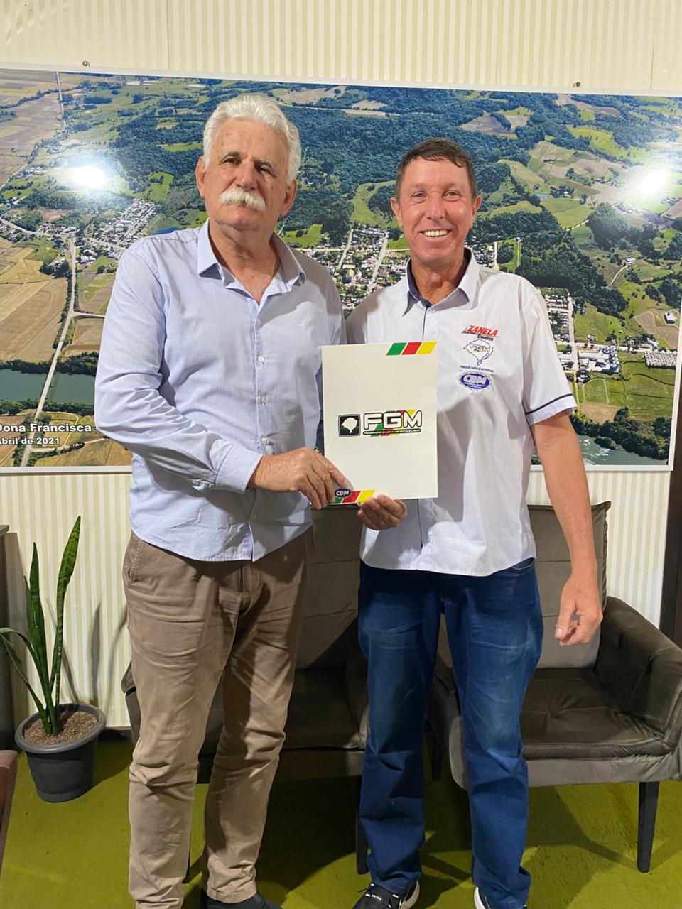 O Diretor Roberto Limberger, conhecido como Zanela, visitou a Prefeitura Municipal de Dona Francisca na quinta-feira dia 11. Ele foi recebido pelo prefeito Saul Reck, em um encontro que teve como foco alinhar a realização de uma etapa do Campeonato Gaúcho de Motocross nos dias 18 e 19 de julho de 2026, durante a programação da tradicional festa de aniversário do município.